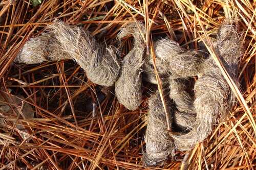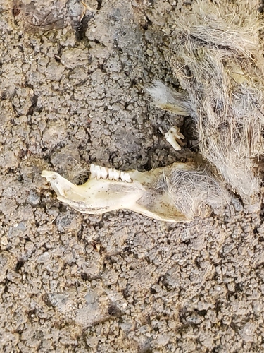 Owl pellet with some sort of rodent jaw in it. Likely from the CSUS great horned owl residentsOwls