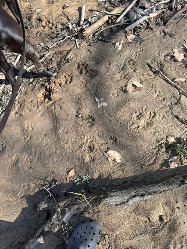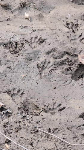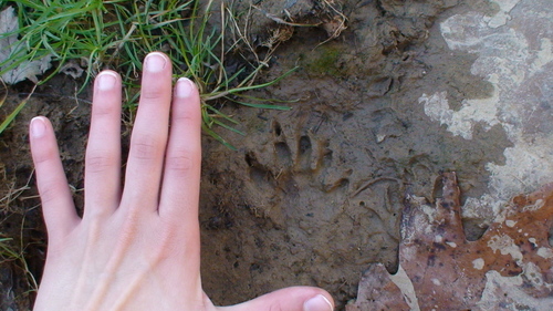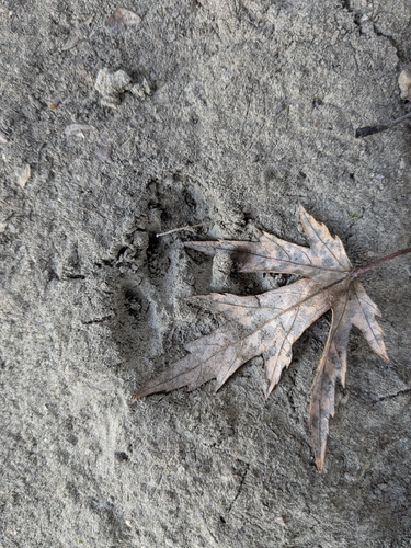 I thought raccoon, but something looked different at the time, which is why I took the photo. Does it have an extra toe? Perhaps it slid in the mud.Common Raccoon